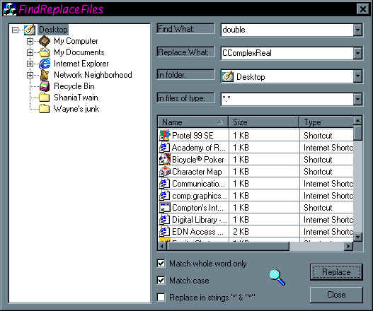 This sample is a file Find/Replace utility I had to write for my programming and my HTML files.